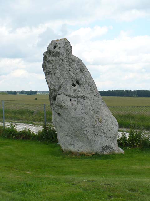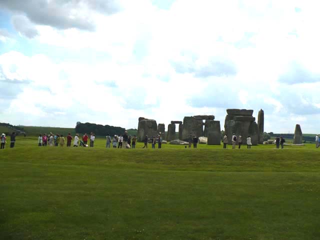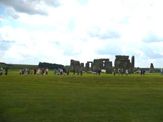 この大石は、もともとのストーンヘンジへの入り口を示すヒールストーンです。 ストーンヘンジのサークルの中心から見たとき、夏至の日の出と一致するのだそうです。⇒写真を拡大する⇒ヒールストーンから中心への動画を写しました。⇒映像を見る(13MB) ⇒縮小映像(3.2MB) |
