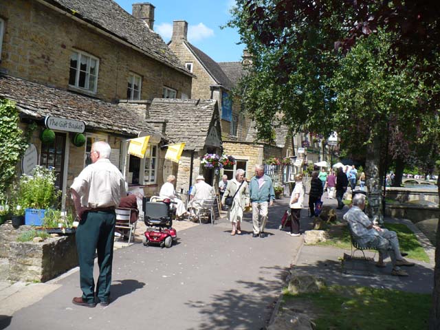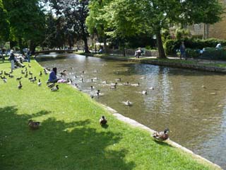 | 駐車場から、このライムストーンの壁の細い通路を通って、バートン・オン・ザ・ウォーターへ出ます。 | 川の中や岸辺にはカモなどの野鳥が沢山いました。⇒写真を拡大する | |