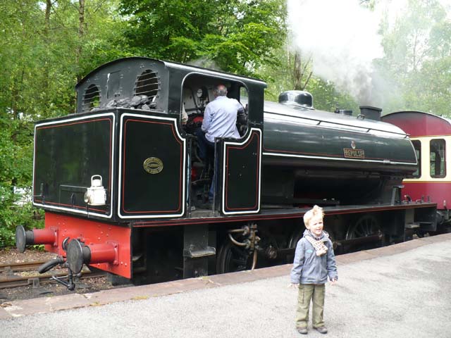 クルーズの後は蒸気機関車に乗車です。乗る前に機関車を撮りたくて、一番前まで走って行きました。可愛い坊やの記念写真をお父さんが一所懸命写していました。⇒写真をもっと見る | ![]() |