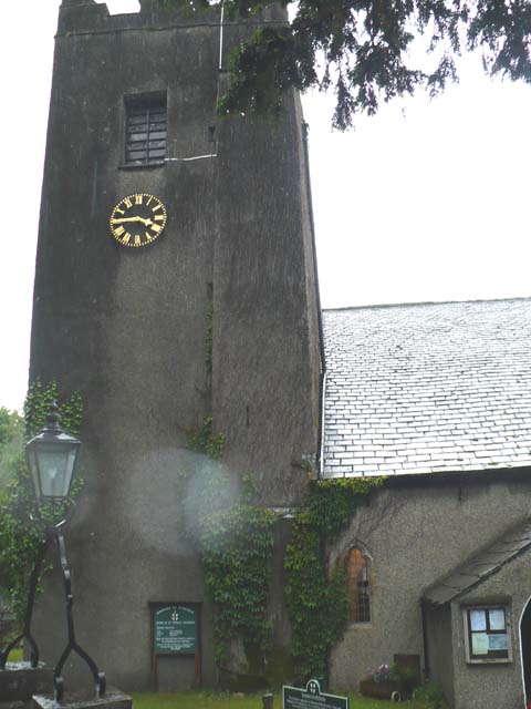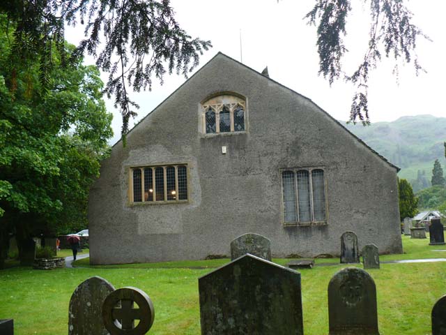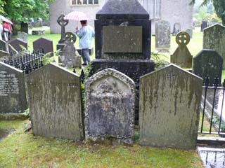 | ワーズワースが葬られているセント・オズワルド教会へ行ってみました。あいにく雨が強くなってきて、いい写真が撮れませんでした。⇒写真を拡大する | 3つ並んでいる一番左がワーズワースのお墓、その右が娘ドラのお墓です。⇒写真を拡大する | |