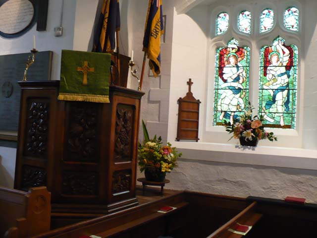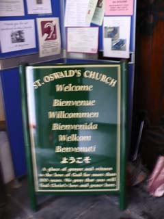 | セント・オズワルド教会を横から見たところです。 ⇒写真を拡大する | 教会の入口には日本語の案内も書かれていました。 | |