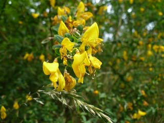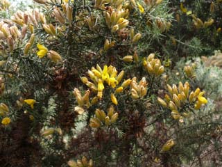 | この坂道を登り切ったところがカールトンヒルです。 | これは「ハリエニシダ(gorse)」の木(花)です。スコットランドの野山で多く見られるそうです。鋭い棘があり、ゴルファー泣かせの木です。 | |
