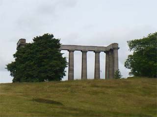 このギリシャ神殿風の建物はナショナル・モニュメントで、ナポレオン戦争で亡くなったスコットランド兵の慰霊の為の国家記念碑です。途中で予算がつき、12本の柱だけの未完のまま放置されていて、エディンバラの恥といわれているそうです。 |