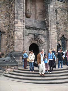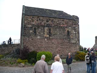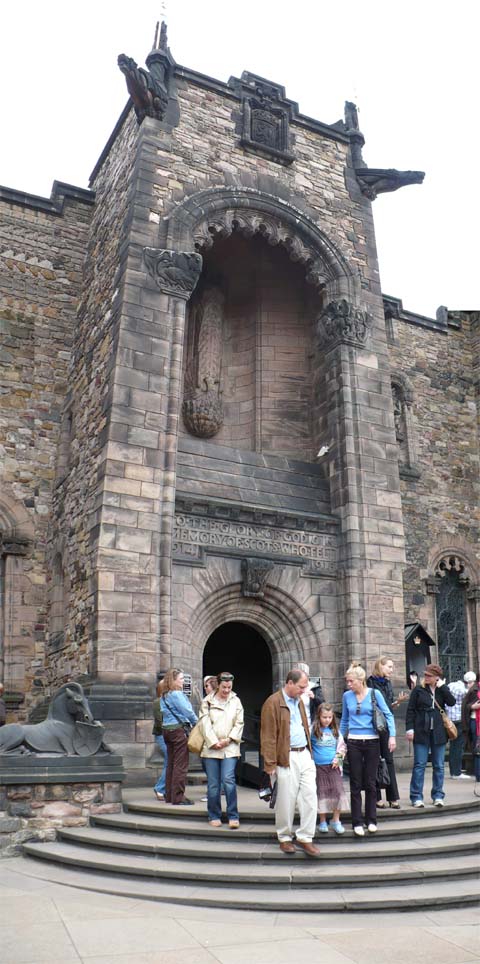 | 中世には教会だったが、その後兵器庫になり、今は「スコットランド戦没者記念堂」になっています。⇒全景を見る | 王の居室があった建物;王宮です。内部には16世紀、稀代の美貌を持ったスコットランド女王メアリー・スチュアートが、スコットランド王ジェームスVI世となる王子を出産したメアリー女王の部屋があります。⇒写真を拡大する | |