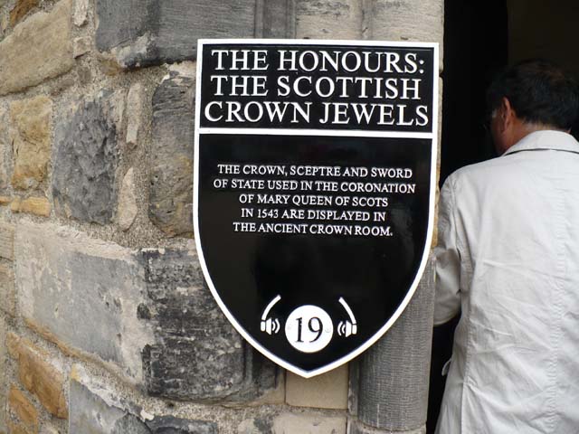 stone of Destiny−運命の石」も、かつてイングランド王エドワード1世によって持ち去られ、1996年に返還されたものです。現在は宝器と一緒にクラウン・ルームに展示されています。⇒表示板を拡大する