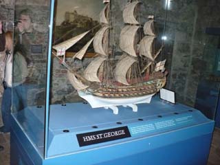 このHMS セント・ジョーンズ号の模型は、エジンバラ城のフランス人捕虜によって作られたものです。 | |