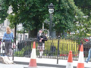 | 道の向こう側でバグパイプを吹いている人がいました。⇒写真を拡大する | スコットモニュメントの入り口です。 | |
