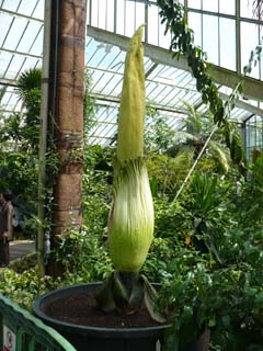 | 非常に沢山の種類があり、全部は写しきれませんでした。⇒写真を拡大する | これは世界一巨大な花のTitan(Giant) Arumですが、残念ながらまだ蕾の状態です。⇒写真を拡大する | |