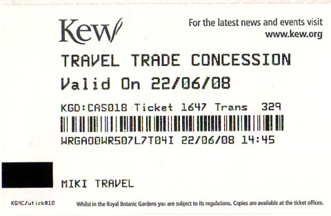 | 最初に入ったパームハウスの前にある、池です。噴水があります。⇒写真を拡大する | 入場券です。⇒裏面を見る | |