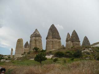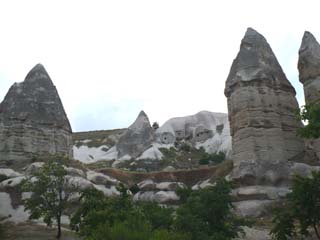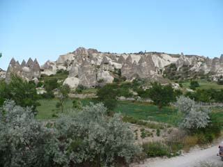 | この辺りは生活道路です。トンネルのように見えるところも、上は道路が通っています。⇒写真を拡大する | カッパドキア特有のキノコ岩が見えてきました。⇒写真を拡大する | |
