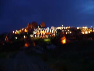 | 8:30ホテルのロビーに集合し、バスで夜景を鑑賞しに出掛けました。 | フリーハンドでは手ブレが大きく、ダメですね。雰囲気だけお伝えします。 |