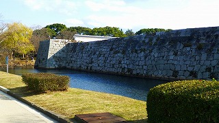 | 大石頼母助屋敷門の説明板です。⇒説明板を読む | 本丸のお堀と石垣です。⇒写真を拡大する | |