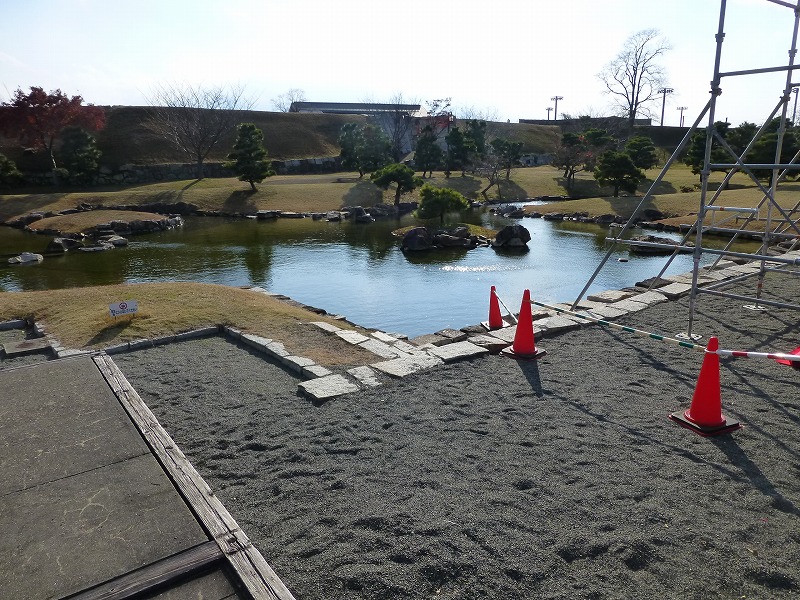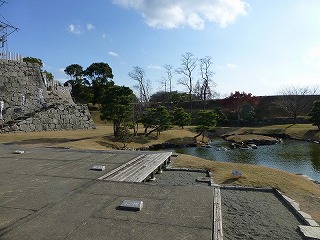 | 本丸庭園が発掘整備されています。⇒写真を拡大する | ここの水も城北から水道管で導水されたものだそうです。⇒写真を拡大する | |